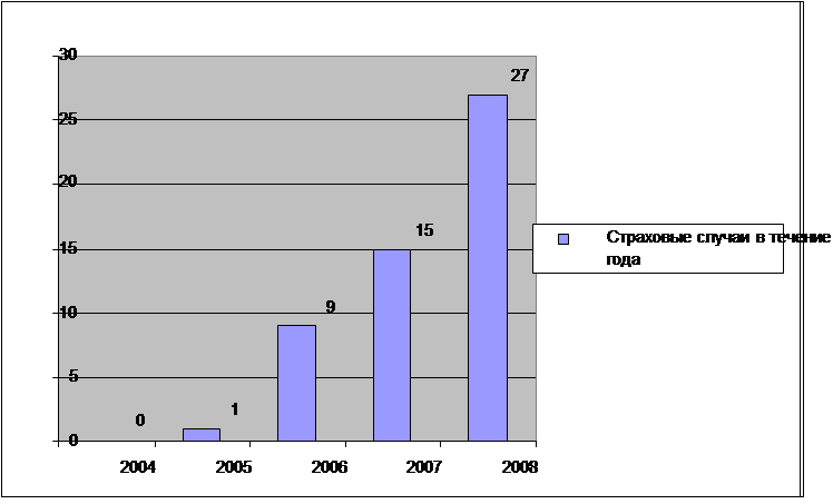 Рис. 9. Количество страховых случаев в период 2004-2008 гг. [68]